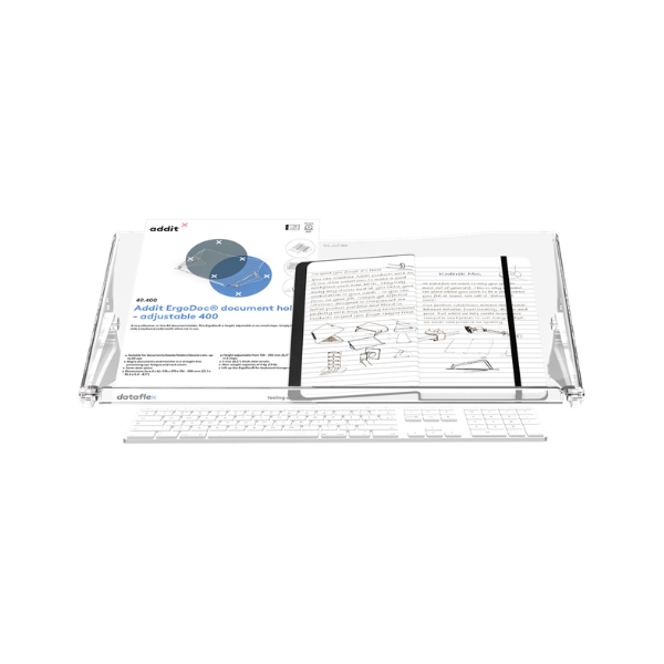 De Addit ErgoDoc documenthouder plaats je in een lijn met je computermonitor, zo liggen je documenten waar je ze nodig hebt. Dit zorgt voor een gezondere werkhouding en verminderd klachten.