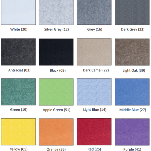Optioneel is het plafondpaneel leverbaar met een LED verlichtingsarmatuur. Het Akoestisch plafondeiland is verkrijgbaar in diverse kleuren. Een overzicht van alle kleuren staat in de afbeeldingen.