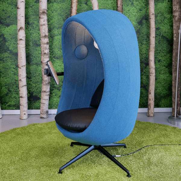 Ook voor de kantooromgeving is de akoestische stoel een uitkomst. Een kantooromgeving heeft veel afleidingen. Per dag word je wel 240 keer onderbroken in je werkzaamheden, wat een negatieve invloed heeft op je productiviteit en concentratievermogen. Neem je plaats in de 4-Senses dan kun je je afschermen van je omgeving zodat je je kunt focussen op een belangrijke taak of telefoongesprek. Of je neemt even de tijd om te ontspannen zodat je daarna weer vol energie aan de slag kunt.