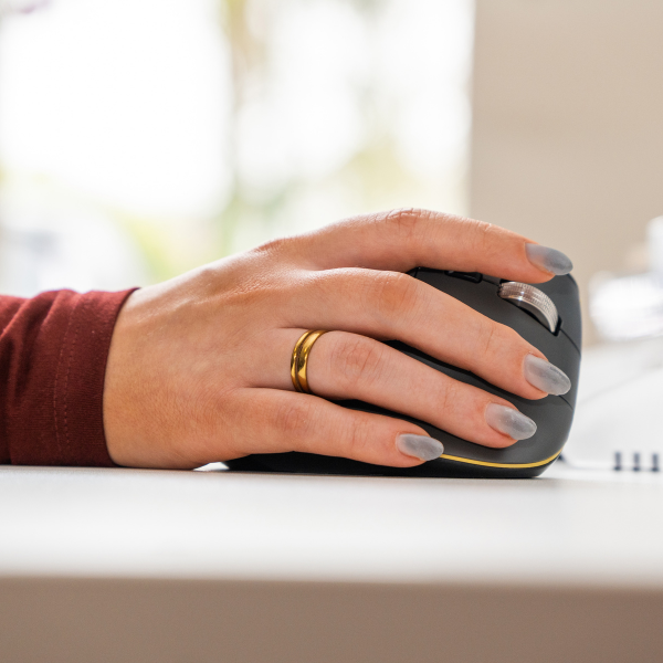 De FastForward muis heeft een hellingshoek van 75°, waardoor je hand en pols in een natuurlijke positie blijven. Dit vermindert spierspanning in de onderarm en voorkomt klachten als RSI en KANS.