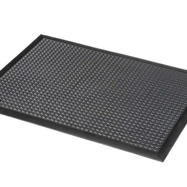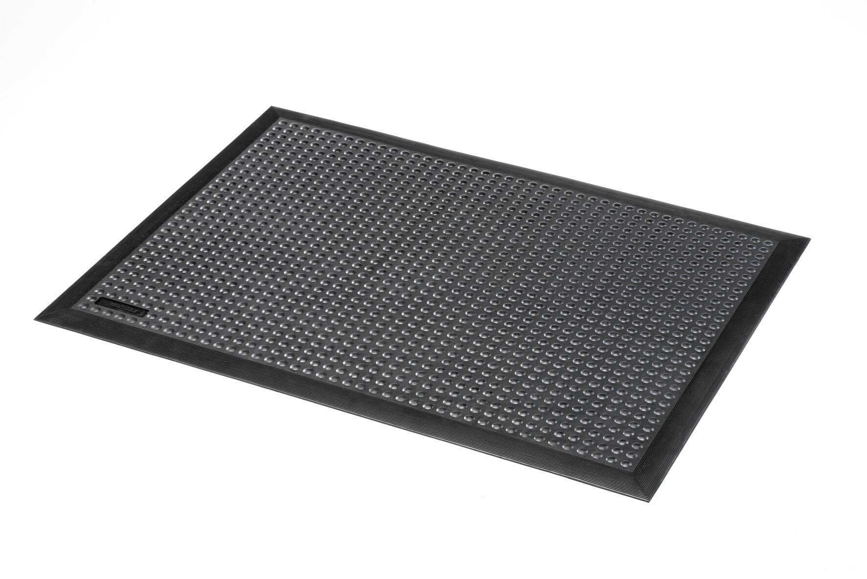 Ce tapis en caoutchouc individuel de 13 mm d'épaisseur a une surface grainée avec des picots ergonomiques, ce qui donne un maximum d'antifatigue sans perdre la propriété antidérapante.