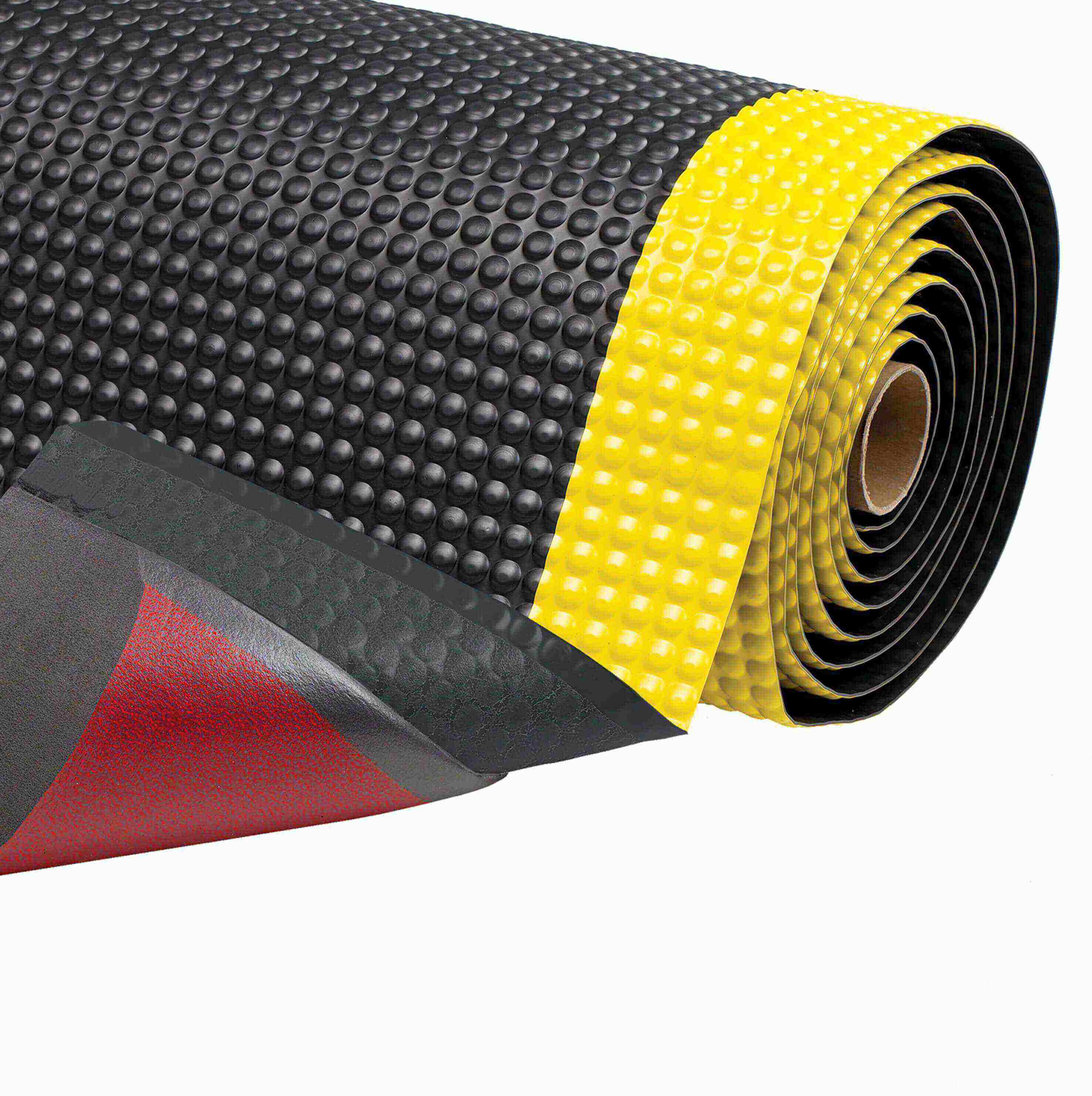 Ce produit offre un confort ergonomique grâce à sa surface cloutée unique combinée à une plate-forme de travail de 19 mm d'épaisseur. Il est conçu pour assurer une résistance au glissement et une liberté de mouvement optimales, testées selon les normes DIN51130 et BG BGR181. De plus, il est équipé d'une sous-couche antidérapante RedStop™ qui empêche le tapis de glisser. Pour une sécurité accrue, il est disponible avec des bords d'avertissement jaunes conformément au code OSHA 1910-144, et ses bords sont arrondis et biseautés pour éviter les risques de trébuchement.