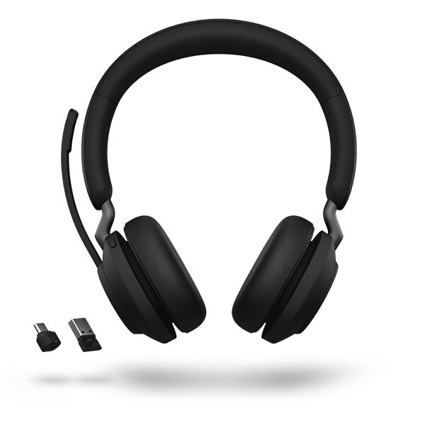 Le casque se connecte facilement à un smartphone ou une tablette via Bluetooth. Grâce à l'adaptateur USB-A, il est également possible de prendre des appels depuis un PC ou un ordinateur portable. Le Jabra Evolve2 65 peut être couplé à deux appareils en même temps, ce qui permet de vous joindre sur les deux. Utilisez les boutons situés sur l'oreille pour répondre ou mettre fin aux appels et régler le volume.