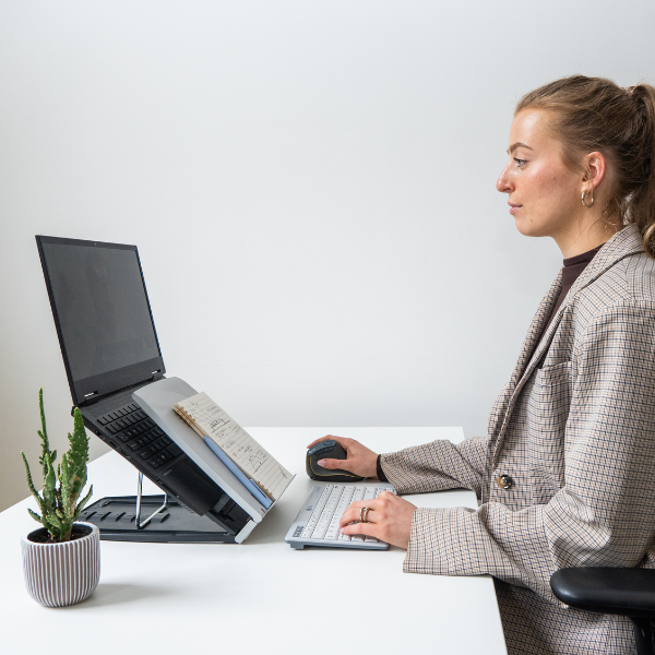 Deze helpt documenten ergonomisch correct te plaatsen, zodat je nek en ogen minder belast worden.