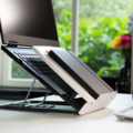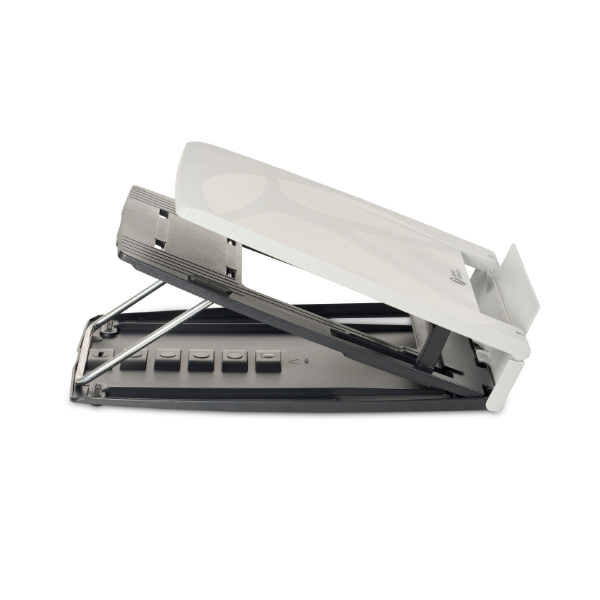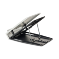 Le support pour ordinateur portable est réglable en six positions et se transporte facilement dans une sac pour ordinateurs portables. De plus, il est doté d'un porte-documents intégré pour plus de praticité.