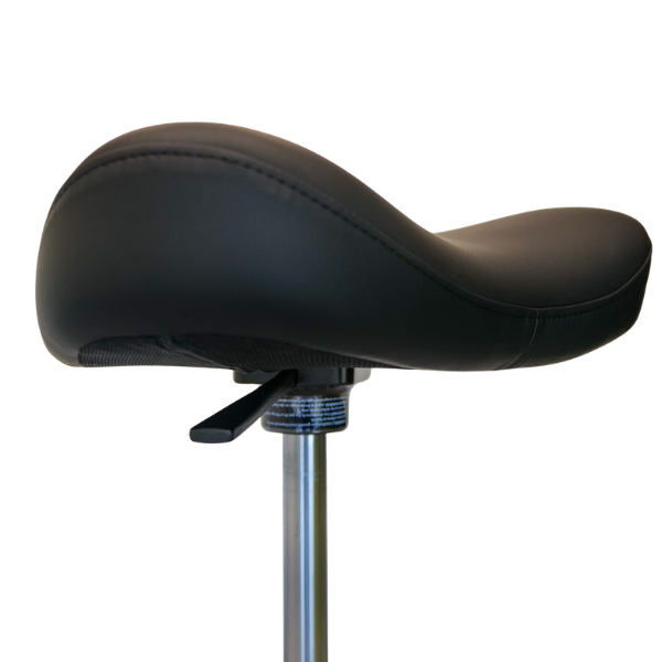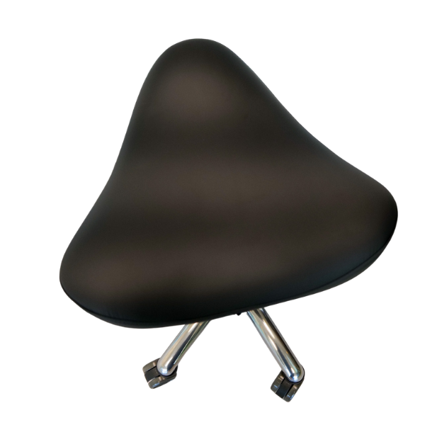 De zadelvormige zitting zorgt voor een natuurlijke en actieve zithouding. Hierdoor kantelt het bekken licht naar voren, wat bijdraagt aan een rechte rug, betere ademhaling en een goede doorbloeding. Daarnaast voorkomt de vorm druk en afknelling in de liezen, wat het comfort verhoogt tijdens langdurig gebruik.