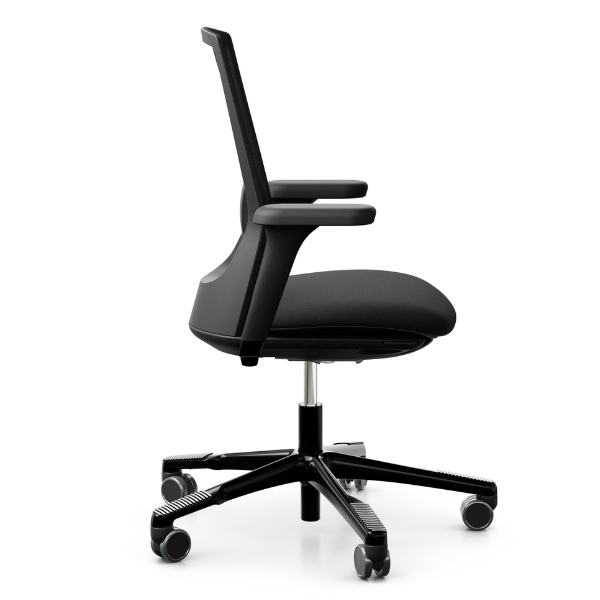 Le mécanisme d'inclinaison est réglable et verrouillable, et la hauteur et la profondeur de l'assise sont faciles à régler. Sur le Hag Futu, les leviers de commande sont intégrés dans le design du siège. Un soutien lombaire fonctionnel et des accoudoirs réglables en 3D font partie de l'équipement standard de cette chaise. Cela signifie que la chaise répond non seulement à la norme NEN-EN 1335, mais aussi à la directive NPR 1813.