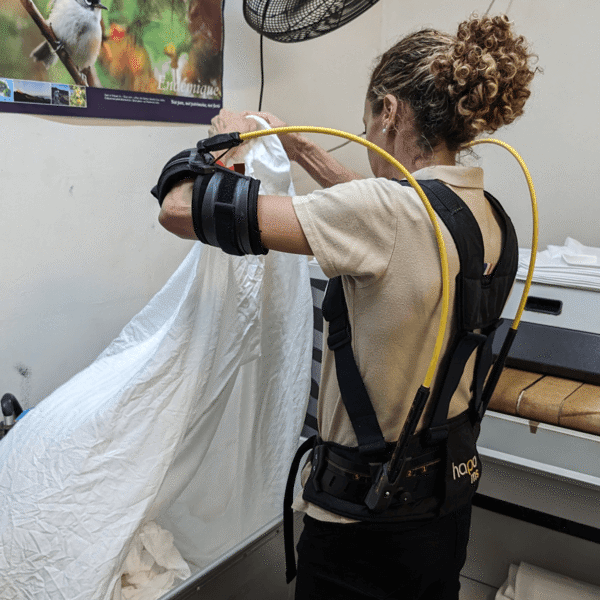 Zeker, het exoskelet is verstelbaar en past over normale werkkleding.