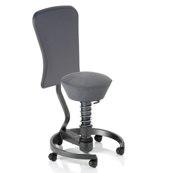 Le siège assis-debout Swopper Work microfibre assure une position assise active et soutient le dos.