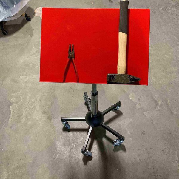 La table de travail Global Mini est une petite mais stable table conçue pour les environnements industriels. Elle est réglable en hauteur grâce à un vérin à gaz, avec un châssis et un plateau en acier. Le plateau est inclinable, équipé d'un bord rabattable pour éviter la chute d'objets. Recouvert d'un revêtement en poudre rouge, le plateau offre durabilité et résistance.