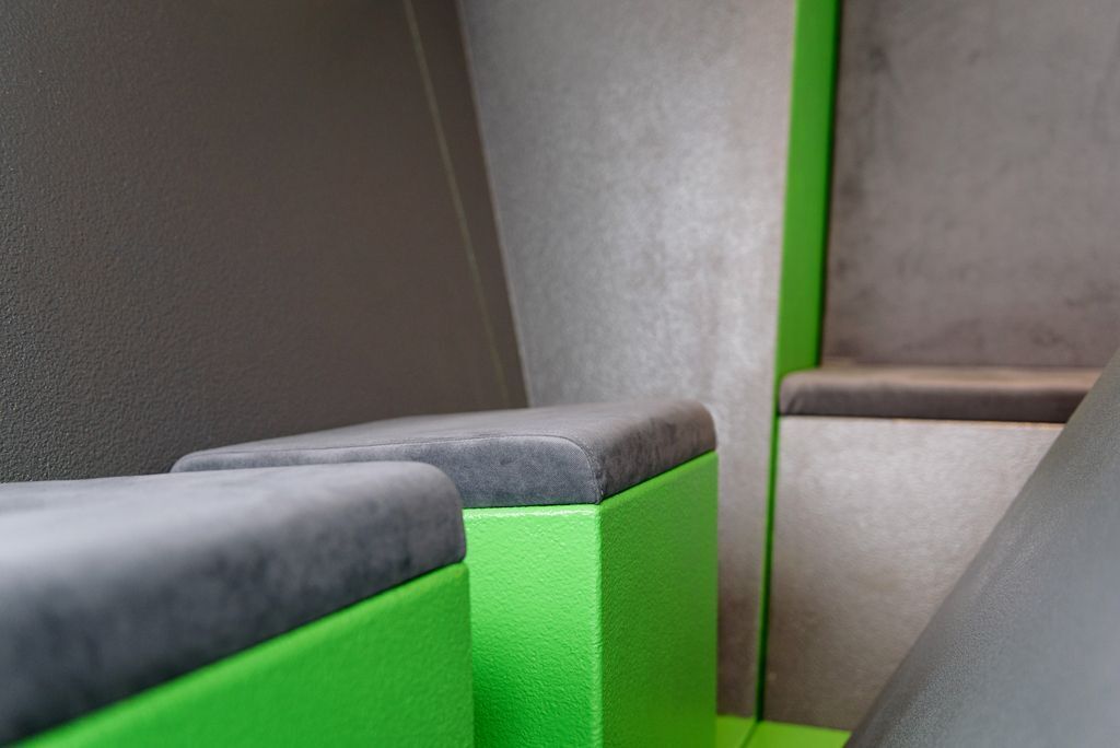 Le Health2Work Work-out est un espace suspendu conçu pour travailler ou consulter. En utilisant les tabourets optionnels, ce cube offre une manière ludique d'alterner entre les positions assise, debout et suspendue, favorisant ainsi une meilleure posture et une activité physique accrue pendant les heures de travail.