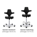 De HAG Capisco 8106 zadelzitting heeft, zoals de naam het al zegt, een unieke zadelzitting en rugleuning. Door de zadelzitting kun je eindeloos afwisselen van lage tot hoge werkposities. Je kunt zelfs staand werken bij een zit- sta bureau.