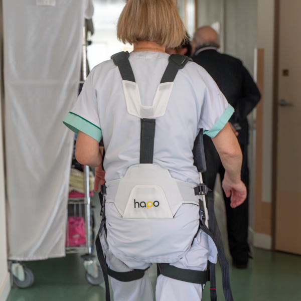 De HAPO is een nieuw exoskelet welke uitblinkt in eenvoud. De HAPO wordt gedragen als een rugzak en is losjes bevestigd op de heup en aan de benen. Dit exoskelet is zo ontworpen om de rugspieren en de ruggenwervels te ontlasten.