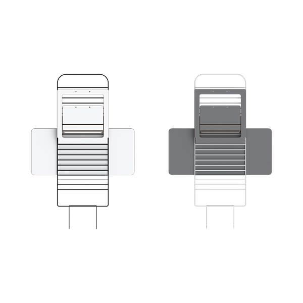 ook ruimte is voor je smartphone, glas water en notitieblok. Ook kun je kiezen tussen twee kleuren, een glad wit bureaublad of stijlvol grijs bureaublad.
