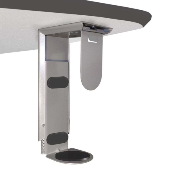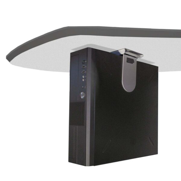 De QuickClick CPU houder wordt onder het bureau bevestigd, dit creëert een stuk extra ruimte op de vloer onder het bureau.