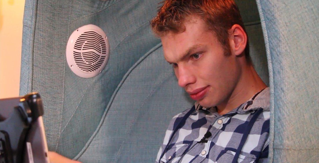 Juist op dinsdag had Paul een heel druk programma. Hij is aan het werk op de kinderboerderij, ondergaat een zware sessie fysiotherapie en wanneer hij thuis is wachten hem de dagelijkse taken en corvee. Door zijn drukke programma en de vele prikkels kon Paul zijn normale taken bijna niet meer uitvoeren, vertelt Jan Jakob. “Voor een half jaar hebben we Paul daarom elke week langs laten komen bij de innovatieruimte om van de 4-Senses akoestische stoel gebruik te maken.” De verandering is direct zichtbaar en persoonlijk begeleider Esther is super tevreden. “Op dinsdag is Paul meer ontspannen, vrolijker en gezelliger.”