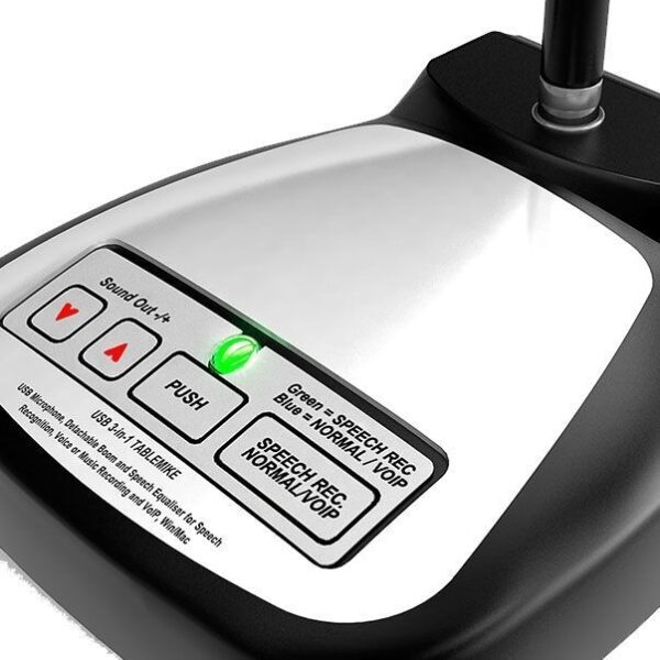De Tablemike 3-in-1 tafelmicrofoon is een losse microfoon met ingebouwde geluidskaart. De microfoon beschikt over uiterst gevoelige ruis- en achtergrondgeluid onderdrukking. Dankzij de ruis- en achtergrondgeluid onderdrukking is de tafelmicrofoon erg geschikt voor spraakherkenning. Met de Tablemike 3-in-1 wordt het dragen van een headset overbodig.